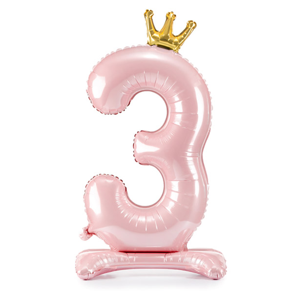 Balon folija številka 3 s krono - roza