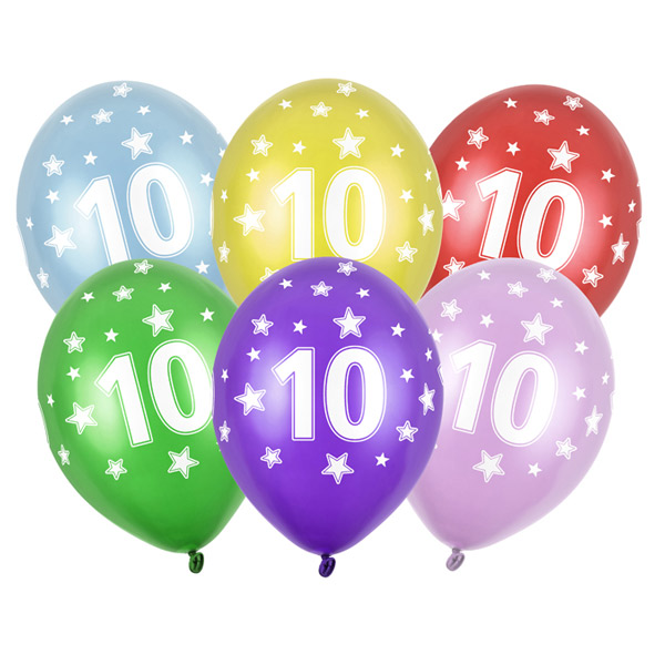 V pakiranju so barvni baloni za rojstni dan (6 kosov). Lateks baloni številka 10 so primerni za praznovanje 10. rojstnega dne ali obletnice.