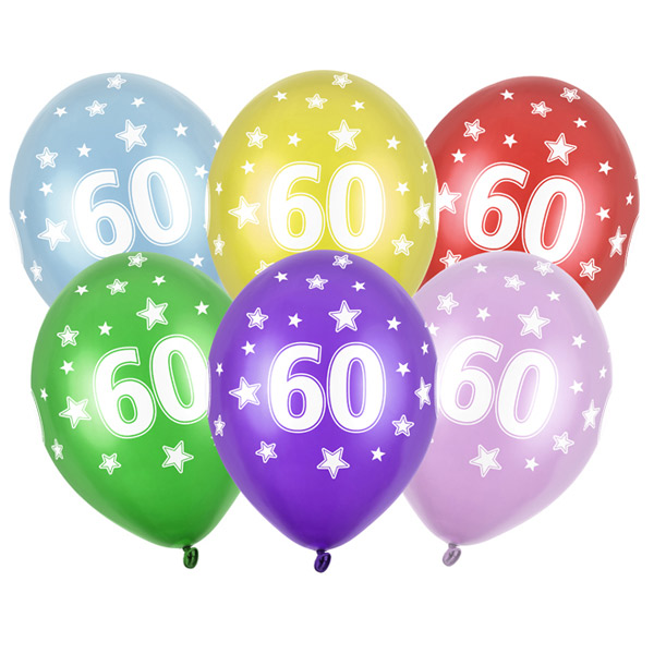 V pakiranju so barvni baloni za rojstni dan (6 kosov). Lateks baloni številka 60 so primerni za praznovanje 60. rojstnega dne ali obletnice.