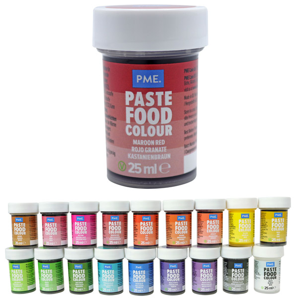 PME koncentrirane paste so priročne za barvanje sladkorne mase, marcipana, modelirne mase. Lahko uporabite tudi za barvanje maslene kreme in Čarobne kreme.