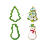 Set plastičnih modelčkov za izdelavo božičnih keksov v obliki Božičnega drevesa in snežaka.