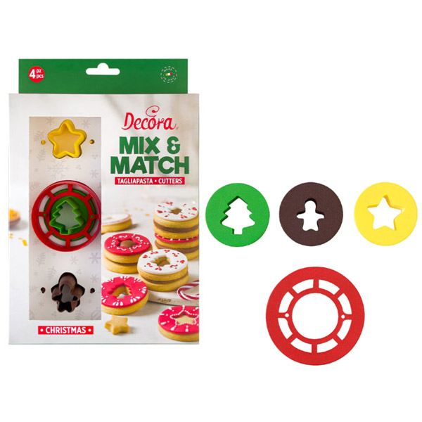 Set 4 plastičnih rezalnikov - okrogel osnovni model in 3 vstavna modela.
