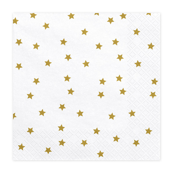 V pakiranju prejmete dvoslojne papirnate serviete bele barve na zlate zvezdice.