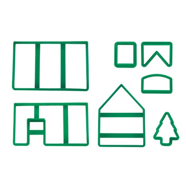 Set plastičnih modelčkov za izdelavo hiške velikosti ca. 15 x 19 x 21 cm.