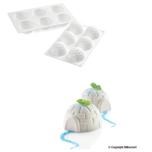 Silikonski model Igloo 115 priznanega proizvajalca Silikomart kapacitete 6 x 115 ml, skupaj 690 ml, dimenzije Ø 76 mm, višine 42 mm.