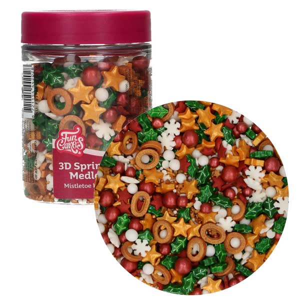 Mistletoe Kisses je preprost način, da svoji božični peki dodate topel in vesel praznični pridih! Zlate zvezde, bele snežinke in beli posip dodajo veselo praznično čarobnost vsaki kreaciji.