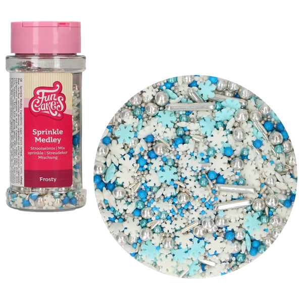 Sladkorni posip Frosty Medley je popoln za okrasitev tort, cupcakes, krofov, piškotov, sladoleda in še veliko več!