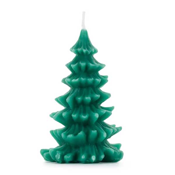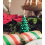 Sveča v obliki božične jelke v temno zeleni barvi.