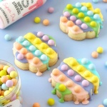 Te slastne čokoladne kroglice so čarobno pomladno obarvane v pastelno vijolični, roza, svetlo modri, rumeni in zeleni barvi.