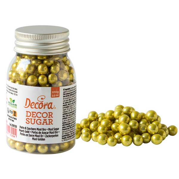 Okrasne sladkorne perle v metalik zlati barvi.