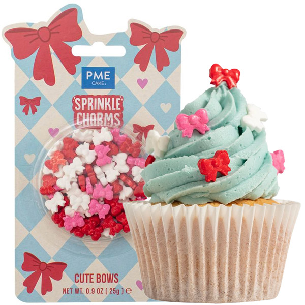 PME mešanice za posip v obliki roza, rdeče in bele pentlje je preprost in praktičen dodatek za dekoracijo vaših sladic.