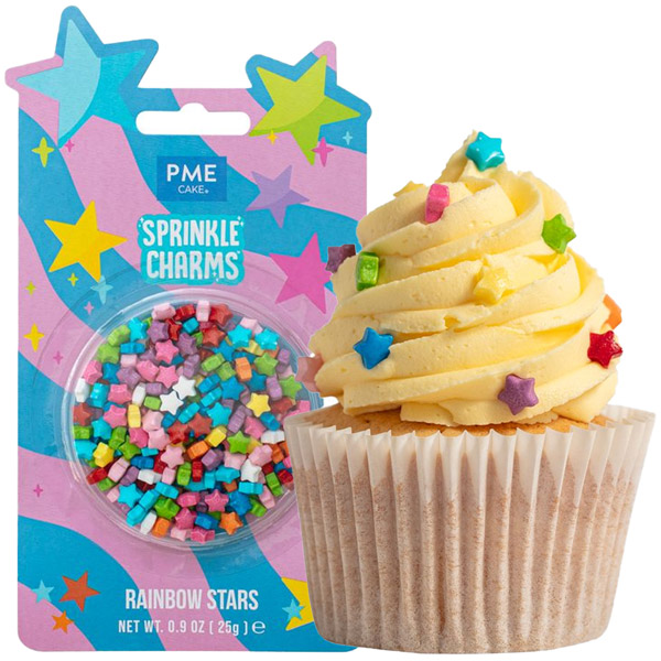 PME okraski v oblikah zlatih zvezdic v mavričnih barvah so preprosti in praktični dodatki za dekoracijo vaših sladic.