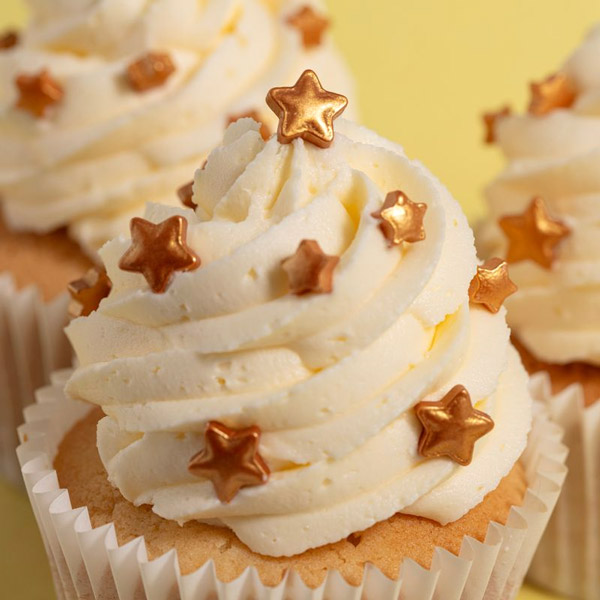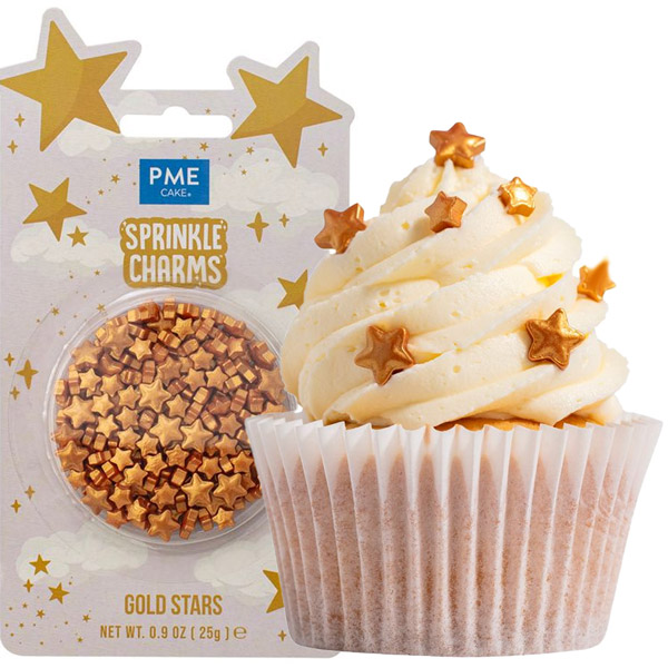 PME okraski v oblikah zlatih zvezdic so preprosti in praktični dodatki za dekoracijo vaših sladic.
