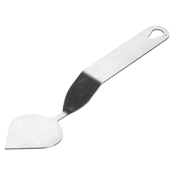 Lopatica iz nerjavečega jekla za izdelavo čokoladnih dekoracij v obliki listov.