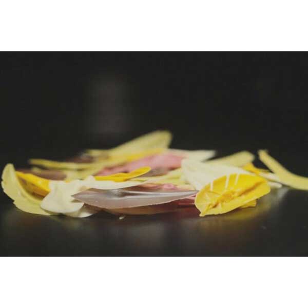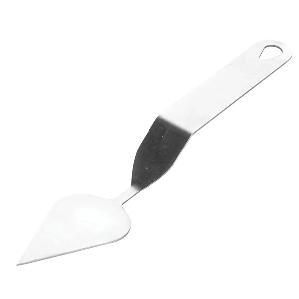 Lopatica iz nerjavečega jekla za izdelavo čokoladnih dekoracij v obliki listov.