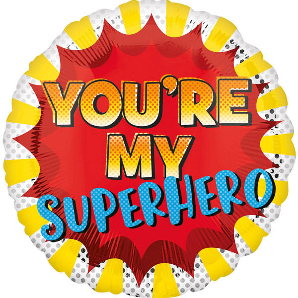 Balon folija You' Re My Superhero vam v prodajalni napolnimo s helijem. Pri spletnem naročilu v paketu prejmete balon na traku z utežjo napolnjen s helijem.