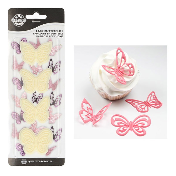 Komplet 4 izsekovalcev za okraševanje tort ali cupcake z motivom metuljčka.