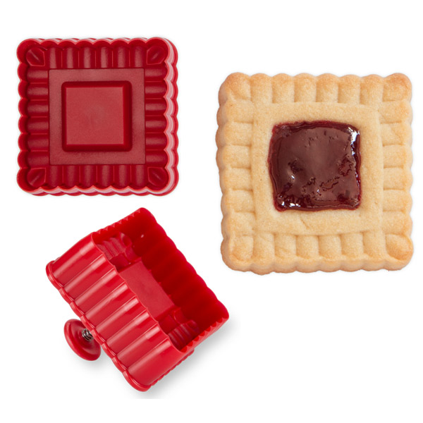 Orodje za izrez keksov. Odtisi so vidni tudi na že pečenih keksih.
