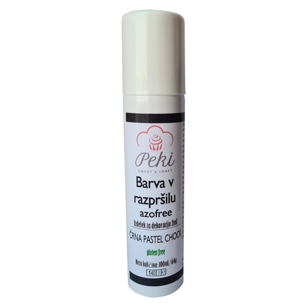 Jedilna barva v razpršilu, primerna za površinsko barvanje torte prekrite s smetano ali sladkorno maso.