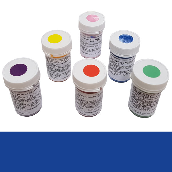 Uporaba: proizvod topen v maščobi za barvanje čokolade. Dodajte direktno v proizvod katerega želite obarvati ali nanesite s čopičem na površino proizvoda.