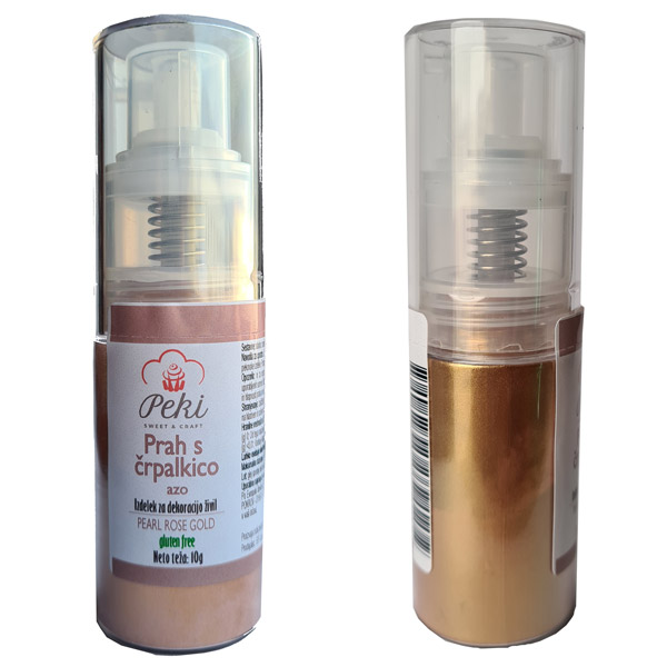 Perla Rose Gold prah v priročni črpalkici omogoča enkraten nanos barvila na vaše izdelke.