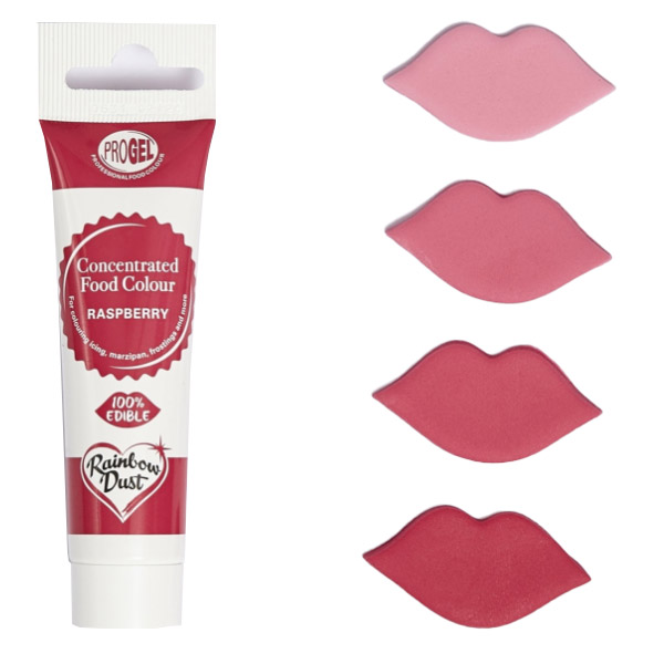 Le majhna količina ProGel-a je potrebna za pridobitev globokih in bogatih barv vaših izdelkov, kar pomeni da bo vaša tubica barve trajala polno časa. Enostavno dodajte majhno količino vašemu fondantu, marcipanu, masleni kremi, smetani, biskvitnemu testu, …