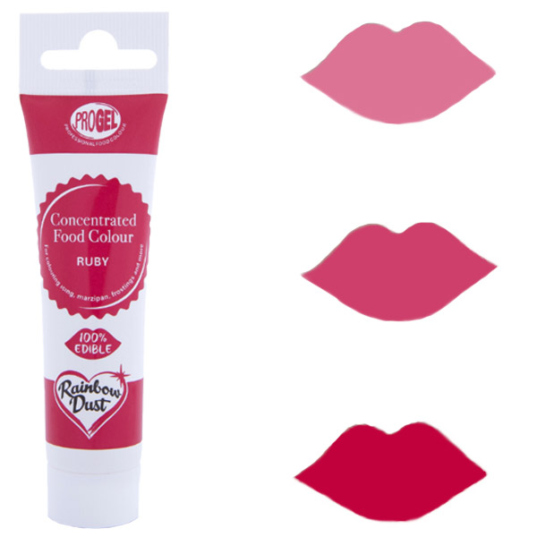 Le majhna količina ProGel-a je potrebna za pridobitev globokih in bogatih barv vaših izdelkov, kar pomeni da bo vaša tubica barve trajala polno časa. Enostavno dodajte majhno količino vašemu fondantu, marcipanu, masleni kremi, smetani, biskvitnemu testu, …