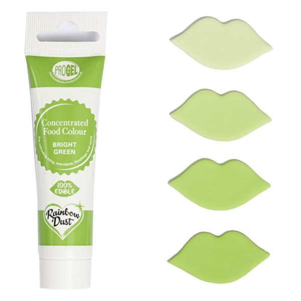 Le majhna količina ProGel-a je potrebna za pridobitev globokih in bogatih barv vaših izdelkov, kar pomeni da bo vaša tubica barve trajala polno časa. Enostavno dodajte majhno količino vašemu fondantu, marcipanu, masleni kremi, smetani, biskvitnemu testu, …