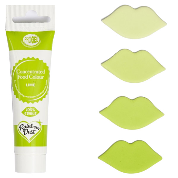Le majhna količina ProGel-a je potrebna za pridobitev globokih in bogatih barv vaših izdelkov, kar pomeni da bo vaša tubica barve trajala polno časa. Enostavno dodajte majhno količino vašemu fondantu, marcipanu, masleni kremi, smetani, biskvitnemu testu, …