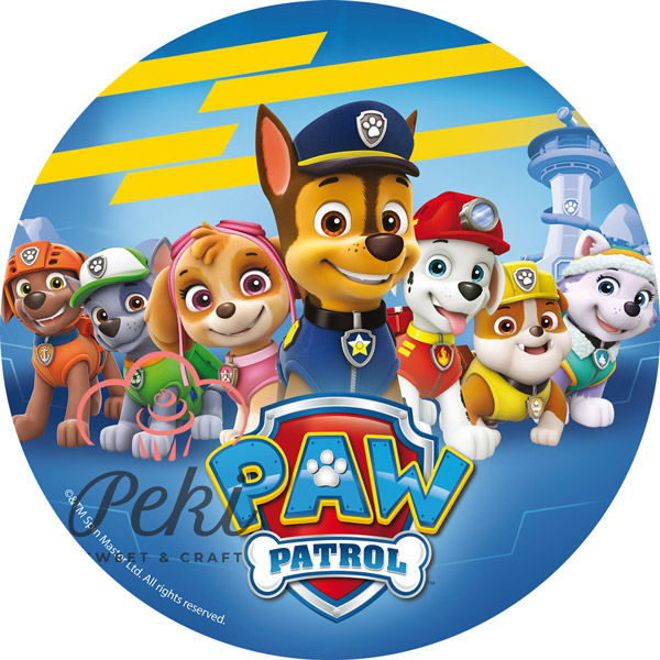Jedilna hostija Paw Patrol. Hostija je v okrogli obliki. Dimenzije: Ø 20 cm.