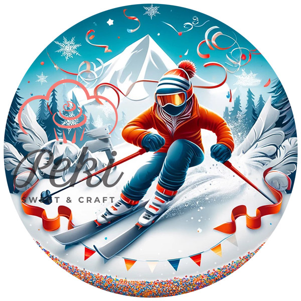 Jedilna hostija Smučanje. Hostija je v okrogli obliki.