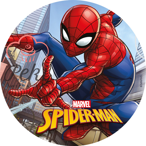 Jedilna hostija Spiderman. Hostija je v okrogli obliki. Dimenzije: Ø 20 cm.