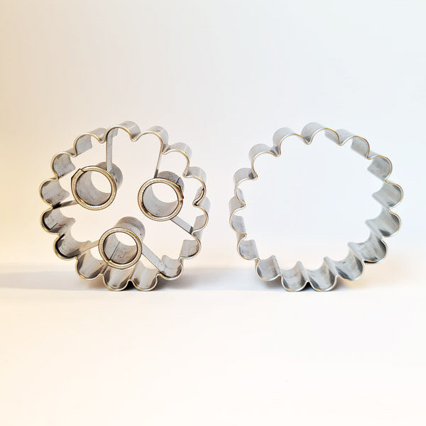 Model za izdelavo dvoplastnih keksov linške oči, iz nerjavečega jekla.