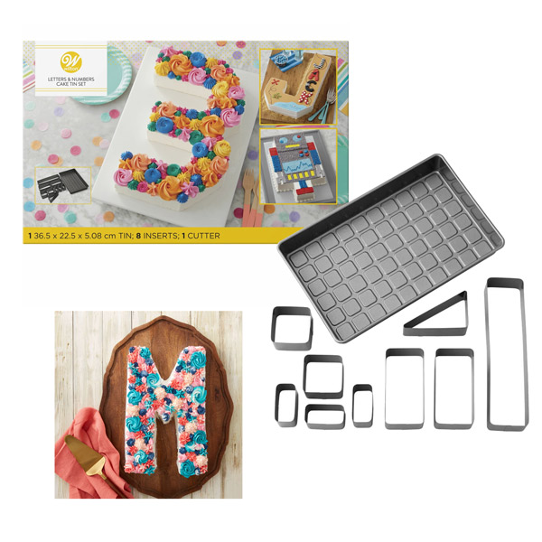 Z različnimi vstavki lahko preprosto ustvarite želeno črko ali številko. Vstavke enostavno položimo v pekač, ga napolnimo z maso in spečemo torto želene oblike.