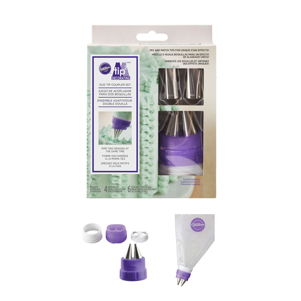 Set za dekoriranje DUO vam omogoča da ustvarite edinstvene, večstrukturne oblike na vaših slaščicah z uporabo dveh nastavkov hkrati.