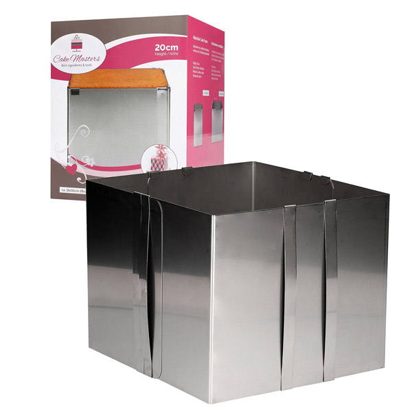 Nastavljiv kvadratni okvir za torto ki se lahko uporablja za peko biskvita in za samo sestavo torte.