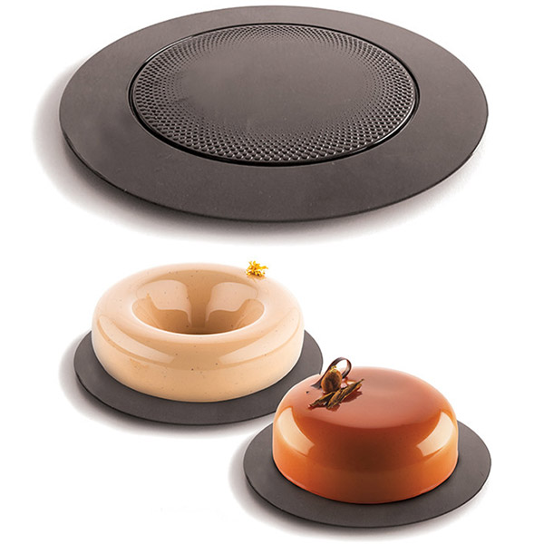 Elegantni plastični pladnji priznanega proizvajalca Silikomart za večkratno uporabo, kot nalašč za prezentacijo, shranjevanje in transport vaših tort zahvaljujoč inovativnemu nedrsečemu osrednjemu delu.