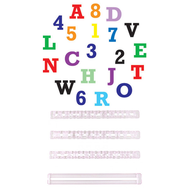 Komplet velikih tiskanih črk in števil za izrez iz sladkorne mase.