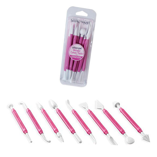 Set orodja priznanega proizvajalca Silikomart za oblikovanje sladkorne mase. Orodje je izdelano iz plastičnega materiala.