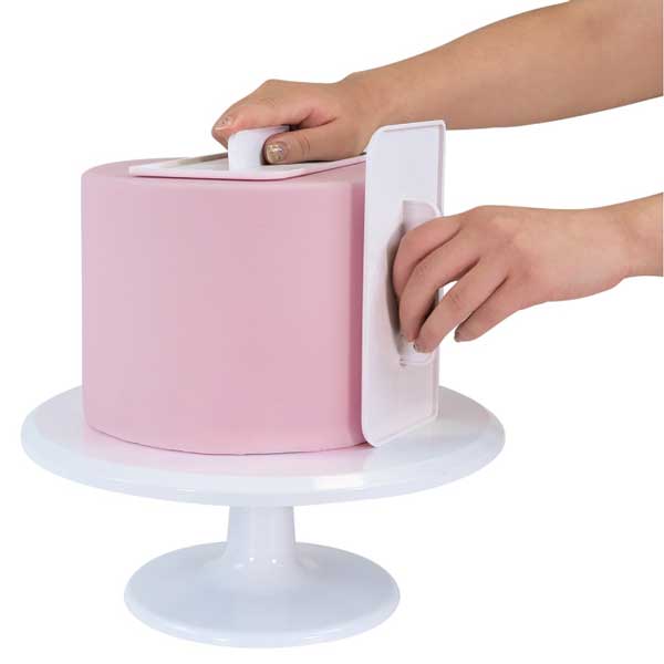 Vsaka gladilka ima 2 zaobljena in 2 kvadratna robova in omogoča glajenje ene strani, medtem ko z drugo gladilko trdno držite nasprotno stran, s čimer preprečite, da bi na vaši torti ostali odtisi rok in prstov.
