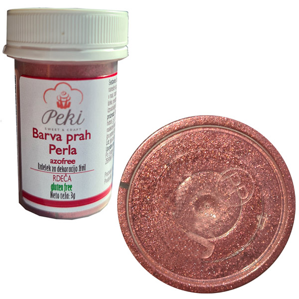 Perla barva v prahu za barvanje površine proizvoda. Z mešanjem s šelakom lahko ustvarite tekočo barvo. Njegov biserni učinek ni opazen v masi, razen če se uporablja v prozornih spojinah, kot so želeji ali glazure.