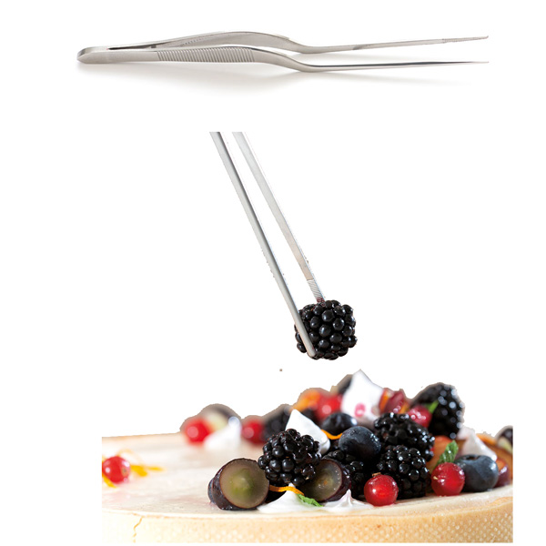 Kuhinjska pinceta iz nerjavečega jekla idealna za natančno okrasitev sladic ali postrežbo.
