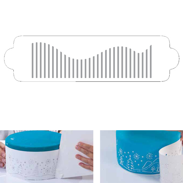 S to šablono enostavno naredite lep vzorec na fondantu, marcipanu ali strjeni glazuri s pomočjo razprševanja barve z Airbrush barvili , jedilnimi barvami v razpršilu ali s pomočjo nanosa Royal Icing mase.