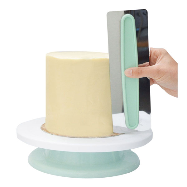 Gladilka iz nerjavečega jekla pomaga pri ustvarjanju popolnoma gladkih stranic torte.