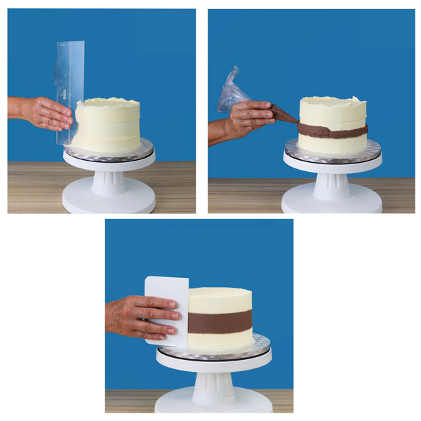 S tem priročnim strgalom oz gladilko lahko ustvarite gladke ali vzorčaste robove torte.