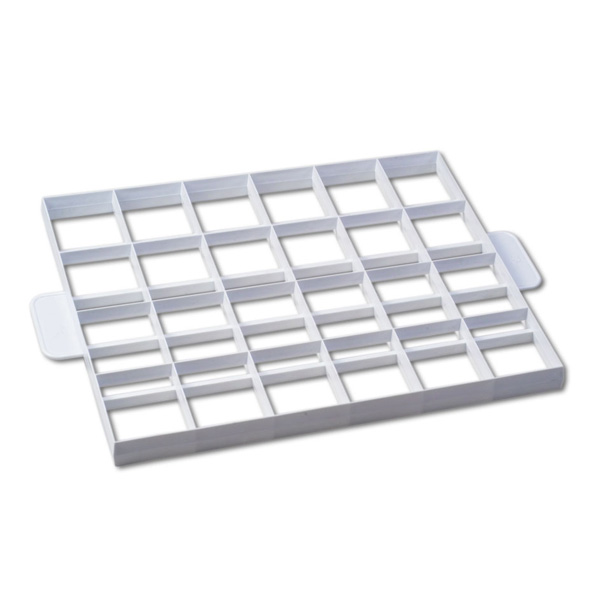 Orodje za oblikovanje enakih porcij. Celotna dimenzija orodja je: 36 x 30 cm.