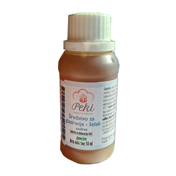 Tekoči šelak, primeren za dodajanje sijaja in zaščito slaščic na osnovi sladkorja ali čokolade.