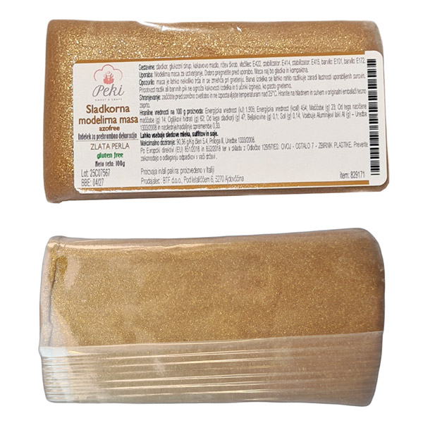 Unikatna sladkorna oz modelirna masa v zlati barvi. Sladkorna masa, katero je mogoče razvaljati ZELO na tanko.