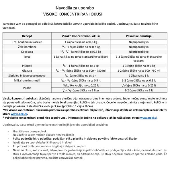 Visoko koncentrirani okusi so okusi, znani tudi kod olje ali okusi za slaščice. Izraz olje za slaščice se nanaša na vrsto okusa, ki je koncentriran in nerazredčen. Visoko koncentrirani okusi so 3 do 4 krat močnejši od običajnih okusov na osnovi alkohola. Zasnovani so tako, da prenesejo višje temperaturne zahteve pri izdelavi sladkarij, lahko pa se uporabljajo tudi za aromatiziranje skoraj vsega, vključno s pekovskimi izdelki in glazuro! Okusi so primerni za sladkorno maso in marcipan. Zaradi visoke koncentracije, struktura sladkorne mase ali marcipana se ne bo spremenila pri uporabi.