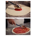 Žlica iz nerjavečega jekla za doziranje paradižnikove omake na pizzo.